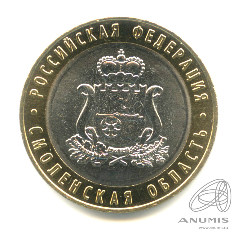 Динамика цен по монете 10 рублей 2025 ММД „Смоленская область“ MSСмоленская областьСерия: Российская Федерация Смоленская область расположена в центральной части Восточно-Европейской (Русской) равнины. На западе граничит с Республикой Беларусь. Административным, промышленным и культурным центром области является город Смоленск — один из древнейших городов России (известен с середины IX века). Промышленность (производство готовых металлических изделий, химических веществ и продуктов, резиновых и пластмассовых изделий) является одним из основных секторов экономики области. Источники: www.admin-smolensk.ru, www.mid.ru Аверсна диске в центре — обозначение номинала монеты «10 РУБЛЕЙ», внутри цифры «0» — скрытые, видимые поочередно при изменении угла зрения изображения числа «10» и надписи «РУБ», внизу — товарный знак монетного двора; на кольце вверху — надпись «БАНК РОССИИ», внизу — год «2025», слева и справа — изображения ветвей лавра и дуба, элементы которых переходят на диск.Реверсрельефное изображение герба Смоленской области; на кольце по окружности — рельефные надписи, разделенные точками: в верхней части — «РОССИЙСКАЯ ФЕДЕРАЦИЯ», в нижней части — «СМОЛЕНСКАЯ ОБЛАСТЬ».Каталожные номера