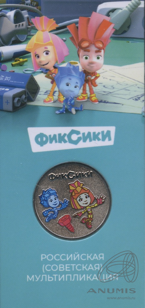 Динамика цен по монете 25 рублей 2025 ММД „Фиксики (цветная)“ MSФиксикиСерия: Российская (советская) мультипликация Анимационный сериал «Фиксики», появившийся в России в 2010 году, рассказывает детям о маленьких человечках, которые живут в приборах, механизмах и других вещах, созданных человеком, и ухаживают за ними. Фиксики в игровой форме рассказывают детям о науке, технике и том, как устроен мир вокруг. С момента выхода сериала его посмотрели по всему миру свыше 25 миллиардов раз. Информация предоставлена ГК «Рики». Аверсрельефное изображение Государственного герба Российской Федерации, над ним вдоль канта — надпись полукругом «РОССИЙСКАЯ ФЕДЕРАЦИЯ», обрамленная с обеих сторон сдвоенными ромбами, под гербом в центре в три строки — надпись «БАНК РОССИИ», номинал монеты «25 РУБЛЕЙ», год выпуска «2025 г.», справа — товарный знак монетного двора.Реверсвыполненное в цвете изображение героев мультсериала «Фиксики», вверху — надпись «ФИКСИКИ».Каталожные номера