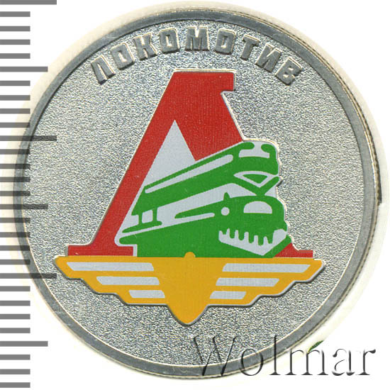 ЛокомотивСерия: Российский спорт Общественная организация «Российское физкультурно-спортивное общество «Локомотив» является общественным объединением, созданным в целях развития физической культуры и спорта на железнодорожном транспорте, на предприятиях транспортно-строительного комплекса, предприятиях метрополитена, железнодорожных учебных заведениях и других предприятиях, связанных с железнодорожной отраслью. Первое сообщение о создании общества появилось 3 ноября 1935 года на страницах газеты «Красный спорт». В нем говорилось, что на железнодорожном транспорте создается единое добровольное спортивное общество железнодорожников «Локомотив». Уже 5 декабря 1935 года был утвержден устав нового спортивного общества, а указанием Наркомата путей сообщения день 12 января 1936 года был объявлен днем официального рождения спортобщества «Локомотив». Ежегодно РФСО «Локомотив» проводит на всей территории страны от Калининграда до Сахалина не менее 10 всероссийских соревнований и 200 региональных, в которых участвуют более 15 тысяч спортсменов-железнодорожников и членов их семей. В настоящее время под брендом «Локомотив» выступают семь клубов: футбольный клуб «Локомотив» (Москва), хоккейный клуб «Локомотив» (Ярославль), баскетбольный клуб «Локомотив-Кубань» (Краснодар), мужской волейбольный клуб «Локомотив» (Новосибирск), женский волейбольный клуб «Локомотив-Калининградская область» (Калининград), пляжный футбольный клуб «Локомотив» (Москва) и регбийный клуб «Локомотив-Пенза» (Пенза). Источник: www.rfsolokomotiv.ru Аверсрельефное изображение Государственного герба Российской Федерации, над ним вдоль канта — надпись полукругом «РОССИЙСКАЯ ФЕДЕРАЦИЯ», обрамленная с обеих сторон сдвоенными ромбами, под гербом в центре в три строки — надпись «БАНК РОССИИ», номинал монеты «25 РУБЛЕЙ», год выпуска «2025 г.», справа — товарный знак монетного двора.Реверсвыполненное в цвете изображение символики Российского физкультурно-спортивного общества «Локомотив»; вверху по окружности — рельефная надпись «ЛОКОМОТИВ».Каталожные номера
