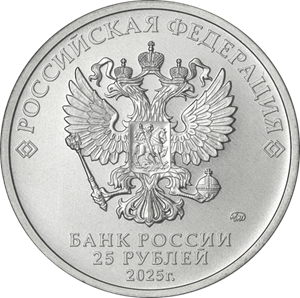 СпартакСерия: Российский спорт В начале 1935 года было решено организовать физкультурное общество, задачей которого было объединение спортсменов-производственников. 19 апреля 1935 года официально было создано Всесоюзное добровольное физкультурное общество «Спартак». Основной задачей спартаковцев, наряду с подготовкой спортсменов, стала работа по привлечению к активному образу жизни работников артелей, членов их семей, учащихся. 22 июля 1937 года за выдающиеся заслуги в развитии массовой физической культуры и спорта ЦИК СССР наградил общество «Спартак» орденом Ленина. Свыше 700 спортсменов красно-белого общества стали победителями и призерами Олимпийских игр, Чемпионатов мира и Европы и других крупных международных соревнований. Высокие спортивные заслуги спартаковских спортсменов и тренеров отмечены государственными наградами. Источник: rfso-spartak.ru Аверсрельефное изображение Государственного герба Российской Федерации, над ним вдоль канта — надпись полукругом «РОССИЙСКАЯ ФЕДЕРАЦИЯ», обрамленная с обеих сторон сдвоенными ромбами, под гербом в центре в три строки — надпись «БАНК РОССИИ», номинал монеты «25 РУБЛЕЙ», год выпуска «2025 г.», справа — товарный знак монетного двора.Реверсвыполненное в цвете изображение символики Российского физкультурно-спортивного общества «Спартак»; вверху по окружности — рельефная надпись «СПАРТАК».Каталожные номера