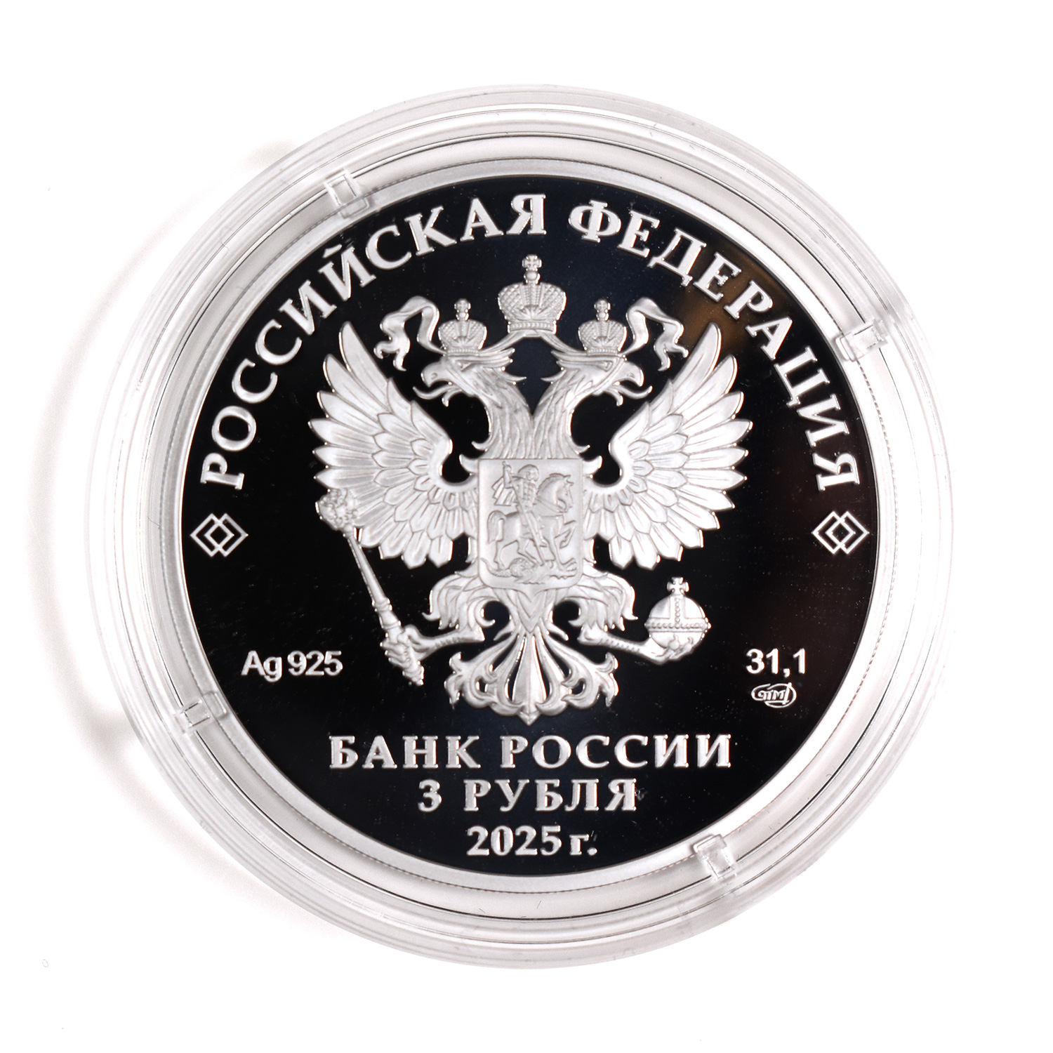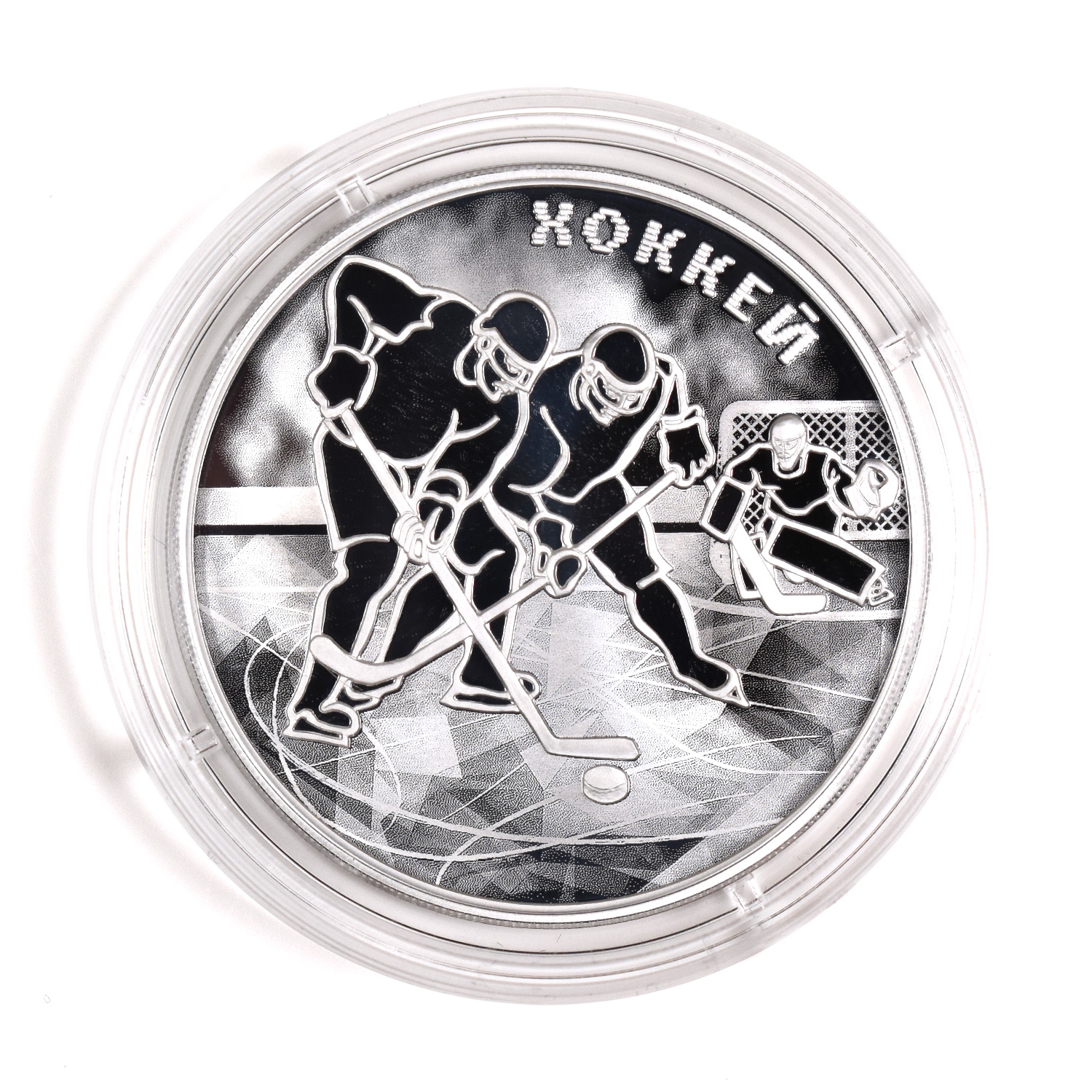 Динамика цен по монете 3 рубля 2025 СПМД „Хоккей“ PROOFХоккейСерия: Российский спорт Хоккей с шайбой — это командный вид спорта, проводимый на ледовой площадке, в котором две команды стремятся с помощью клюшек забросить шайбу в ворота соперника. Каждая команда одновременно выставляет на лед шесть игроков: одного вратаря, двух защитников и трех нападающих. Матч проходит в три периода по 20 минут чистого игрового времени, победителем становится команда, забросившая больше шайб за отведенное время. Игроки используют защитное снаряжение, чтобы минимизировать риск травм. Игра требует от спортсменов высокой физической подготовки, мастерства катания на коньках и слаженной командной работы. Хоккей с шайбой популярен во многих странах мира. С 1920 года включен в программу Олимпийских игр. Аверсрельефное изображение Государственного герба Российской Федерации, над ним вдоль канта — надпись полукругом «РОССИЙСКАЯ ФЕДЕРАЦИЯ», обрамленная с обеих сторон сдвоенными ромбами, под гербом слева — обозначения драгоценного металла и пробы сплава, справа — содержание химически чистого металла и товарный знак монетного двора, внизу в центре в три строки — надпись «БАНК РОССИИ», номинал монеты «3 РУБЛЯ», год выпуска «2025 г.».Реверсрельефные изображения двух хоккеистов, борющихся за шайбу, и вратаря на фоне выполненного в технике лазерного матирования изображения ворот; вверху справа по окружности — надпись «ХОККЕЙ».Каталожные номера