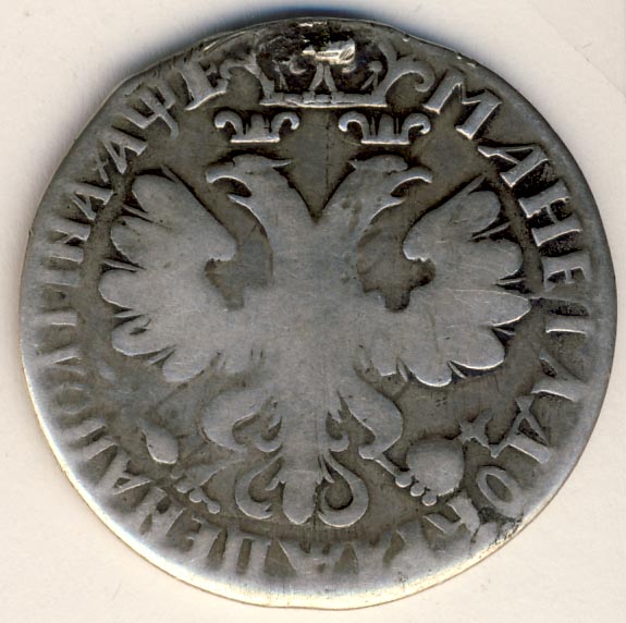 10 проходовПолтина 1705 - (У основания венка нет локонов) „Портрет Петра I работы Алексеева“. |