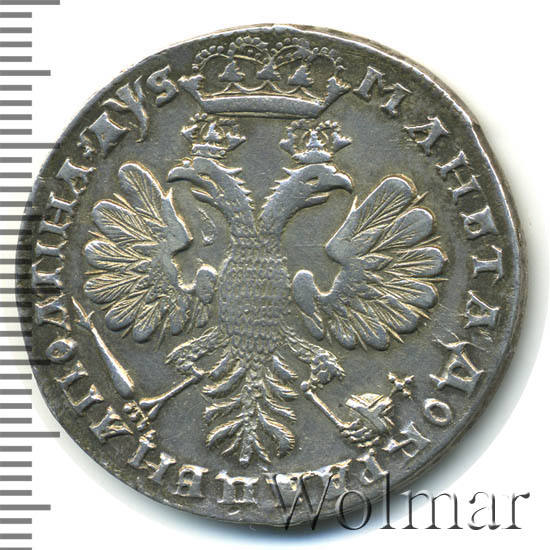 Динамика цен по монете Полтина 1706 - „Портрет Петра I 1706 г“ MSПолтина 1706 годаДата выпуска: 01.01.1706 АверсВ центре профильный портрет вправо императора Петра I, увенчанный лавровым венком. Вокруг портрета надпись: «ЦРЬ ПЕТРЪ АЛЕξIЕВИЧЪ ВСЕѦ РОСIИ ПОВЕЛИТЕЛЬ». По окружности канта — витой точечный ободок.РеверсВ центре изображен Государственный Герб России — двуглавый орёл с распущенными крыльями. Головы которого увенчаны двумя коронами, третья, большая корона над ними. В правой лапе орла — скипетр, в левой — держава. Вокруг орла надпись: «МАНЕТА ДОБРАѦ ЦЕНА ПОЛТIНА ҂АѰS (1706)». По окружности канта — витой точечный ободок.Каталожные номера