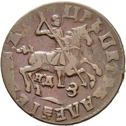 Динамика цен по монете 1 копейка 1716 НДЗ F1 копейка 1716 года НДЗДата выпуска: 01.01.1716 АверсВ центре изображение Георгия Победоносца, поражающего копьём дракона. Под всадником — буквы «НДЗ». Обозначение Набережного монетного двора. Вокруг центрального изображения круговая надпись: «ЦРЬ ПЕТРЪ АЛЕЗIЕВИЧЪ».РеверсВ центре указан номинал в две строки: «КО"│"ПЕИКА». Под надписью, кириллицей, указан год выпуска — «1716». Вокруг центрального изображения круговая надпись: «ВСЕѦ РОССIИ ПОВЕЛIТЕЛЬ».Каталожные номера