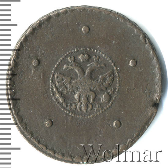 Динамика цен по монете 5 копеек 1724 МД „«Крестовые» 5 копеек“ XF5 копеек 1724 года МДДата выпуска: 01.01.1724 АверсВ центре изображен упрощённый Государственный Герб Российской империи — двуглавый орёл с поднятыми вверх распущенными крыльями. Головы которого увенчаны двумя коронами, третья, большая корона над ними. В правой лапе орла — скипетр, в левой — держава. Под правой лапой — буква «М», под левой — буква «Д». Герб окружен окружностью в виде точек. Вокруг центрального изображения — 5 выпуклых счётных точек. Точки обозначают (дублируют) номинал монеты.РеверсКрестообразно расположенные надписи: номинал — «ПѦТЬ КОПѢЕКЬ» и год выпуска — «1724 ГОДА». Надписи окантованы двойными линиями.Каталожные номера