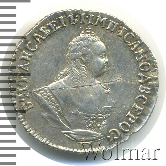 1 370 проходГривенник 1747 - „Портрет Елизаветы“. |