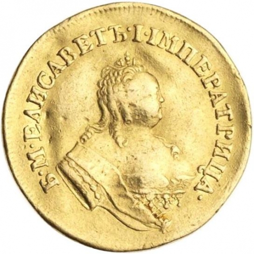 5 проходовДвойной червонец 1751 - (Аверс — орел) „Портрет Елизаветы“. |
