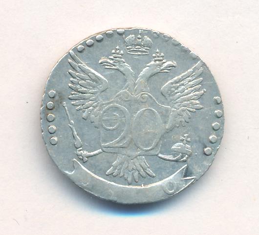 36 проходов20 копеек 1770 СПБ ТI (Без шарфа на шее) „Портрет Екатерины II“. |