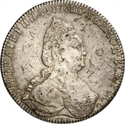 1 рубль 1777 года СПБ-TI-ФЛДата выпуска: 01.01.1777 АверсВ центре профильный портрет вправо императрицы Екатерины II. Вокруг портрета круговая надпись: «Б•М•ЕКАТЕРИНА•II•IМП•ИСАМОД•ВСЕРОСС•". В обрезе рукава — буквы «T.I.», инициалы медальера Тимофея Иванова. Под портретом буквы «С П Б», обозначение Санкт-Петербургского монетного двора. По окружности канта имеются рельефные элементы, выполненные в виде зубцов.РеверсВ центре изображен Государственный Герб Российской империи — двуглавый орёл, головы которого увенчаны двумя коронами, третья, большая корона над ними. На груди орла расположен Московский герб — щит с изображением Георгия Победоносца, поражающего копьем дракона. Вокруг щита орденская цепь с орденом Св. Апостола Андрея Первозванного. В правой лапе орла — скипетр, в левой — держава. Под правой лапой — буква «Ф», под левой — буква «Л». Инициалы минцмейстера Фёдора Лесникова. Над орлом дата выпуска монеты — «1777». Вокруг орла, обращенная внутрь, надпись: «МОНЕТА•РУБЛЬ•". По окружности канта имеются рельефные элементы, выполненные в виде зубцов.Каталожные номера