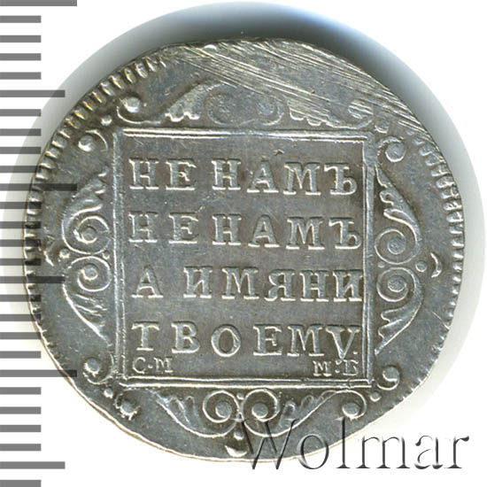 Динамика цен по монете Полуполтинник 1799 СМ МБ „Монограмма Павла I“ VFПолуполтинник 1799 года СМ-МБДата выпуска: 01.01.1799 АверсВ центре изображена крестообразная монограмма, состоящая из 4 букв «П», увенчанных императорскими коронами и римской цифры «I» в центре. Вдоль канта круговая надпись: «ПОЛУ ПОЛТИ ННИКЪ 1799.Г.», разделённая на 4 части императорскими коронами.РеверсВ центре изображен картуш с надписью в четыре строки: «НЕ НАМЪ"│"НЕ НАМЪ"│"А ИМЯНИ"│"ТВОЕМУ.». Под надписью буквы: слева — «С.П.», обозначение Санкт-Петербургского монетного двора, справа — «М.Б», инициалы минцмейстера Михаила Бобровщикова.Каталожные номера