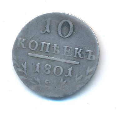Динамика цен по монете 10 копеек 1801 СМ АИ „Вензель Павла I“ VF10 копеек 1801 года СМ-АИДата выпуска: 01.01.1801 АверсВ центре вензель Павла I. Над ним императорская корона.РеверсВ центре надпись — слово «КОПЕЕКЪ». Над словом указан номинал — цифра «10». Под словом — прямая черта. Под чертой — «1801», дата выпуска монеты. В нижней части изображены две скрещенные ветви идущее вдоль канта. В месте их скрещения: над местом — буквы «С.М», обозначение Санкт-Петербургского монетного двора, под местом скрещения — буквы «А.И», инициалы минцмейстера Алексея Иванова.Каталожные номера