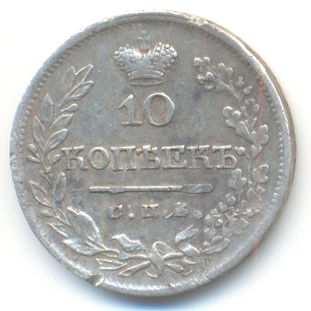 Динамика цен по монете 10 копеек 1822 СПБ ПД VF10 копеек 1822 года СПБ-ПДДата выпуска: 01.01.1822 АверсВ центре изображен Государственный Герб Российской империи — двуглавый орёл с поднятыми вверх распущенными крыльями. Головы которого увенчаны двумя коронами, третья, большая корона над ними. На груди орла расположен Московский герб — щит с изображением Георгия Победоносца, поражающего копьем дракона. Вокруг щита орденская цепь с орденом Св. Апостола Андрея Первозванного. В правой лапе орла — скипетр, в левой — держава. Под правой лапой — буква «П», под левой — буква «Д». Инициалы минцмейстера Павла Данилова. Под инициалами — дата выпуска монеты «1822.». По окружности канта имеются рельефные элементы, выполненные в виде зубцов.РеверсВ центре указан номинал — цифра «10». Над цифрой — Корона Российской империи. Под цифрой номинала — слово «КОПѢЕКЪ». Под словом — прямая черта, под ней — обозначение Санкт-Петербургского монетного двора «С.П.Б.». Вдоль канта, не доходя до короны, изображен венок из лавровой и дубовой ветви, которые в нижней части переплетены лентой. По окружности канта имеются рельефные элементы, выполненные в виде зубцов.Каталожные номера