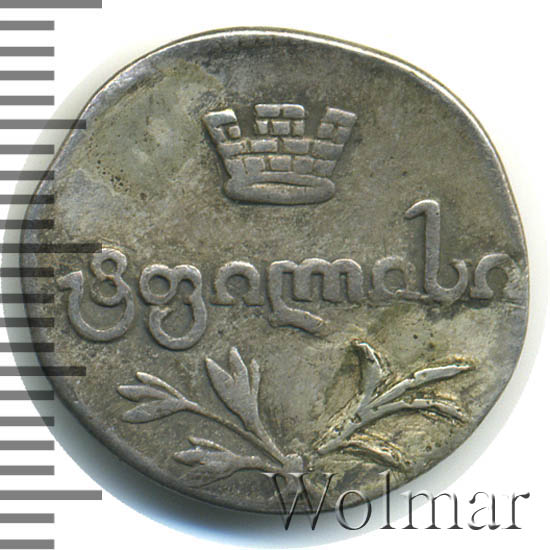 Динамика цен по монете Абаз 1824 АК „Для Грузии в составе Российской Империи“ VFАбаз 1824 года АКДата выпуска: 01.01.1824 АверсВ центре надпись «თბილისი" (Тбилиси). Над надписью — каменная зубчатая корона (эмблема Тбилиси). Под надписью — перекрещённые пальмовая и оливковая ветви.РеверсВ центре надпись — надпись в две строки: «ქართლი თეთრი" (грузинское серебро). Над надписью грузинская цифра, обозначающая номинал — 200 динаров (20 копеек). Ниже надписи указан год чеканки. Под ним прямая черта. Под чертой буквы «А.К». Инициалы минцмейстера Алексея Карпинского.Каталожные номера