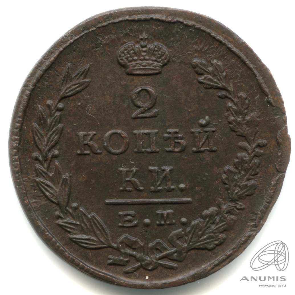 1 081 проход2 копейки 1825 ЕМ ПГ (Орел 1810 г. Обычный.). |