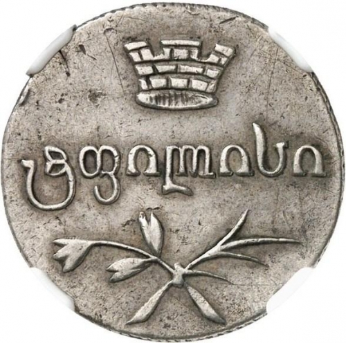 Динамика цен по монете Двойной абаз 1831 ВК „Для Грузии в составе Российской Империи“ FДвойной абаз 1831 года ВКДата выпуска: 01.01.1831 АверсВ центре надпись «თბილისი" (Тбилиси). Над надписью — каменная зубчатая корона (эмблема Тбилиси). Под надписью — перекрещённые пальмовая и оливковая ветви.РеверсВ центре надпись — надпись в две строки: «ქართლი თეთრი" (грузинское серебро). Над надписью грузинская цифра, обозначающая номинал — 400 динаров (40 копеек). Ниже надписи указан год чеканки. Под ним прямая черта. Под чертой буквы «В.К». Инициалы минцмейстера Василия Клеймёнова.Каталожные номера