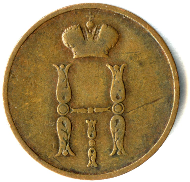 37 проходов1 копейка 1855 ВМ „Вензель Николая I“. |