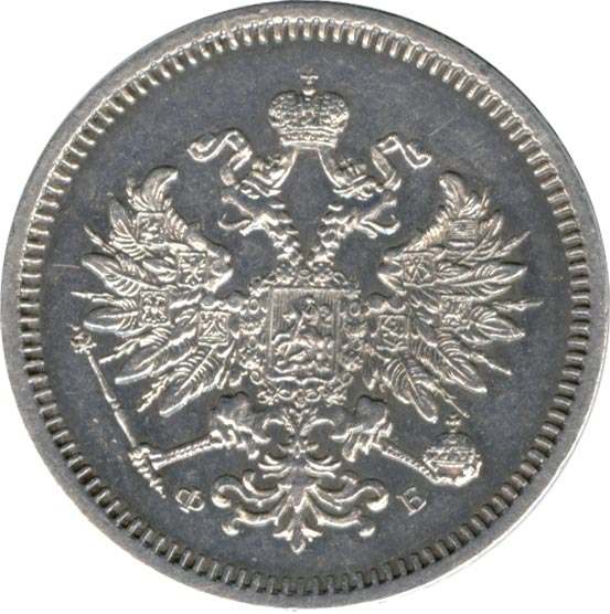 Динамика цен по монете 10 копеек 1860 СПБ ФБ (Орел 1 типа: Тонкий орел) AU10 копеек 1860 года СПБ-ФБ старого образцаДата выпуска: 01.01.1860 АверсВ центре изображен Малый Государственный Герб Российской империи — двуглавый орёл, головы которого увенчаны двумя коронами, третья, большая корона над ними. Все они соединены орденской лентой ордена Св. Апостола Андрея Первозванного. На груди орла расположен Московский герб, в щите изображен Георгий Победоносец с копьем поражающий дракона. Вокруг щита цепь ордена Св. Апостола Андрея Первозванного. На крыльях изображены гербы: Царства Казанского, Польского, Херсонеса Таврического, Астраханского, Сибирского, Грузинского и герб соединенных княжеств Киевского, Новгородского и Владимирского — по 4 на каждое крыло. В правой лапе орла — скипетр, в левой — держава. Под правой лапой — буква «Ф», под левой — буква «Б». Инициалы минцмейстера Федора Блюма. По окружности канта имеются рельефные элементы, выполненные в виде зубцов.РеверсВ центре указан номинал «10», ограниченный с обеих сторон шестиконечными звездочками. Над цифрой — Корона Российской империи. Под цифрой номинала — слово «КОПЕЕК». Ниже, расположен декоративный разделитель в виде двух разнонаправленных фигурных линий и стилизованным из точек крестом между ними. Под разделителем — дата выпуска монеты «1860». Под цифрой даты — обозначение монетного двора «С.П.Б.». Вдоль канта, не доходя до короны, изображен венок из лавровой и дубовой ветви, которые в нижней части перевязаны лентой на узел бантом. По окружности канта имеются рельефные элементы, выполненные в виде зубцов.Каталожные номера