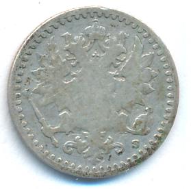 Динамика цен по монете 25 пенни 1866 S „Для Финляндии“ F25 пенни 1866 года SДата выпуска: 01.01.1866 АверсВ центре изображён полный Герб Великого княжества Финляндского — двуглавый орёл, головы которого увенчаны двумя коронами, третья, большая корона над ними. Все они соединены орденской лентой ордена Св. Апостола Андрея Первозванного. На груди орла расположен щит с титульным гербом Великого князя Финляндского, увенчанный княжеской короной. Вокруг щита орденская цепь с орденом Св. Апостола Андрея Первозванного. В правой лапе орла — скипетр, в левой — держава. Под левой лапой знак директора Гельсингфосского монетного двора — литера «S», August Frederick Soldan (Август Фридрих Сольдан). По окружности канта имеются рельефные элементы, выполненные в виде зубцов.РеверсВ центре — надпись в три строки: «25"│"PENNIÄ"│"1866». Вдоль канта изображён не замкнутый венок из двух дубовых ветвей, которые, в нижней части, перевязаны лентой на узел двойным бантом. По окружности канта имеются рельефные элементы, выполненные в виде зубцов.Каталожные номера