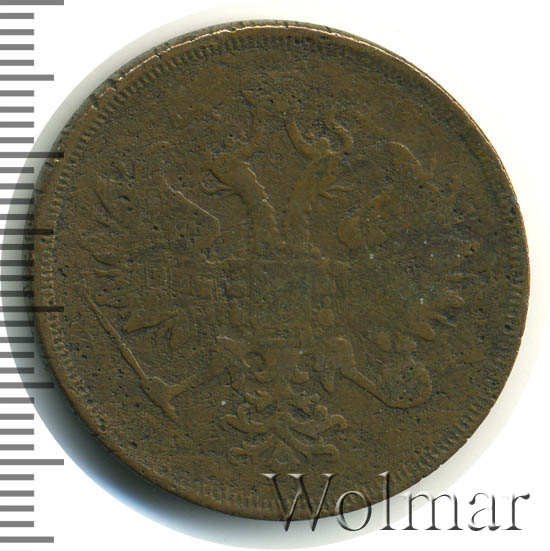 Динамика цен по монете 3 копейки 1866 ЕМ (Орел 1859 г.) VF3 копейки 1866 года ЕМДата выпуска: 01.01.1866 АверсВ центре изображен Малый Государственный Герб Российской империи — двуглавый орёл, головы которого увенчаны двумя коронами, третья, большая корона над ними. На груди орла расположен Московский герб — щит с изображением Георгия Победоносца, поражающего копьем дракона. Вокруг щита орденская цепь с орденом Св. Апостола Андрея Первозванного. На крыльях изображены гербы: Царства Казанского, Польского, Херсонеса Таврического, Астраханского, Сибирского, Грузинского и герб соединенных княжеств Киевского, Новгородского и Владимирского — по 4 на каждое крыло. В правой лапе орла — скипетр, в левой — держава.РеверсВ центре указан номинал «3», ограниченный с обеих сторон цветочными розетками. Под цифрой номинала слово — «КОПЕЙКИ», под ним год выпуска монеты «1866.». Ниже, расположен декоративный разделитель в виде двух фигурных линий и небольшой точки между ними. Под разделителем обозначение монетного двора «Е.М.».По окружности, вдоль канта, декоративный венок вверху, внизу, справа и слева крестообразно перехваченный лентами.Каталожные номера
