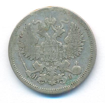 Динамика цен по монете 20 копеек 1869 СПБ НI (Орел 3 типа) F20 копеек 1869 года СПБ-HIДата выпуска: 01.01.1869 АверсВ центре изображен Малый Государственный Герб Российской империи — двуглавый орёл, головы которого увенчаны двумя коронами, третья, большая корона над ними. Все они соединены орденской лентой ордена Св. Апостола Андрея Первозванного. На груди орла расположен Московский герб — щит с изображением Георгия Победоносца, поражающего копьем дракона. Вокруг щита цепь ордена Св. Апостола Андрея Первозванного. На крыльях изображены гербы: Царства Казанского, Польского, Херсонеса Таврического, Астраханского, Сибирского, Грузинского и герб соединенных княжеств Киевского, Новгородского и Владимирского — по 4 на каждое крыло. В правой лапе орла — скипетр, в левой — держава. Под правой лапой — буква «Н», под левой — буква «I». Инициалы минцмейстера Николая Иоссы. По окружности канта имеются рельефные элементы, выполненные в виде зубцов.РеверсВ центре указан номинал — «20», ограниченный с обеих сторон шестиконечными звездочками. Над цифрой — Корона Российской империи. Под цифрой номинала — слово «КОПЕЕК». Ниже, расположен декоративный разделитель в виде двух разнонаправленных фигурных линий и стилизованным из точек крестом между ними. Под разделителем — дата выпуска монеты «1869». Под цифрой даты — обозначение монетного двора «С.П.Б.». Вдоль канта, не доходя до короны, изображен венок из лавровой и дубовой ветви, которые, в нижней части, перевязаны лентой на узел бантом. По окружности канта имеются рельефные элементы, выполненные в виде зубцов.Каталожные номера