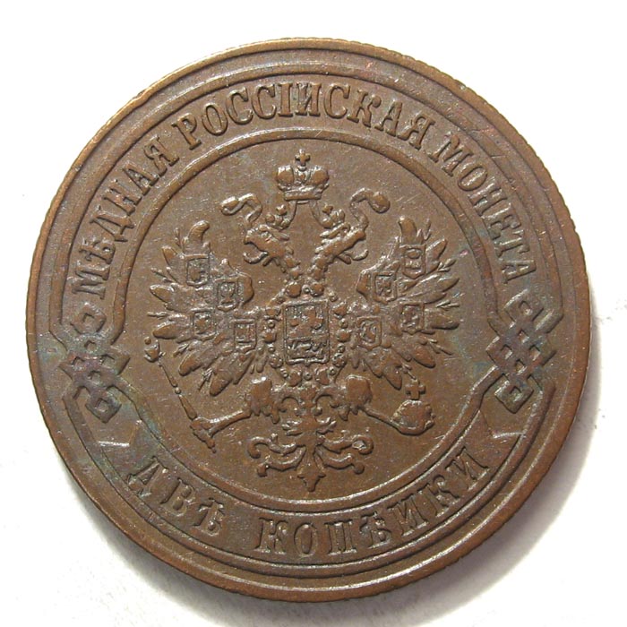 Динамика цен по монете 2 копейки 1872 ЕМ AU2 копейки 1872 года ЕМДата выпуска: 01.01.1872 АверсВ центре монеты изображен Малый Государственный Герб Российской империи — двуглавый орел, головы которого увенчаны двумя коронами, третья, большая корона над ними. Все они соединены лентой Андрея Первозванного. В правой лапе орла — скипетр, в левой — держава. На его груди расположен Московский герб, в щите изображен Георгий Победоносец с копьем поражающий дракона. Вокруг щита цепь ордена Св. Апостола Андрея Первозванного. На крыльях орла изображены гербы: Царства Казанского, Польского, Херсонеса Таврического, Астраханского, Сибирского, Грузинского и герб соединенных княжеств Киевского, Новгородского и Владимирского — по 4 на каждое крыло. По окружности — две полукруглые плашки, соединенные узорами. На верхней плашке выпуклая надпись: «МЕДНАЯ РОССИЙСКАЯ МОНЕТА». На нижней плашке, изображенной в виде ленты, углубленная надпись: «ДВЕ КОПЕЙКИ».РеверсВ центре указан номинал «2», ограниченный с обеих сторон звездочками. Под цифрой номинала слово — «КОПЕЙКИ». Ниже, расположен декоративный разделитель в виде двух изогнутых линий и небольшой окружности между ними. Под линиями обозначение монетного двора «Е.М.». Центральная часть отделена от остального изображения, окружностью в виде точек. В верхней части по кругу углубленная надпись: «1872 ГОДА». Ниже этой надписи, вдоль канта, изображен венок из лавровой и дубовой ветви, которые в нижней части перевязаны лентой на узел бантом.Каталожные номера