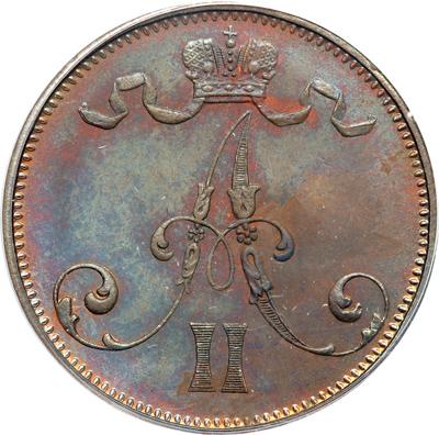 1 486 проход5 пенни 1875 - „Для Финляндии. Вензель Александра II“. |