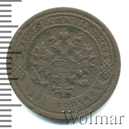 Динамика цен по монете 1 копейка 1881 СПБ VF1 копейка 1881 года СПБ (Александр II)Дата выпуска: 01.01.1881 АверсВ центре изображен Малый Государственный Герб Российской империи — двуглавый орёл, головы которого увенчаны двумя коронами, третья, большая корона над ними. Все они соединены орденской лентой ордена Св. Апостола Андрея Первозванного. На груди орла расположен Московский герб — щит с изображением Георгия Победоносца с копьём поражающего дракона. Вокруг щита цепь ордена Св. Апостола Андрея Первозванного. На крыльях орла изображены гербы: Царства Казанского, Польского, Херсонеса Таврического, Астраханского, Сибирского, Грузинского и герб соединенных княжеств Киевского, Новгородского и Владимирского — по 4 на каждое крыло. По окружности — две полукруглые плашки, соединенные узорами. На верхней плашке выпуклая надпись: «МЕДНАЯ РОССИЙСКАЯ МОНЕТА». На нижней плашке, изображенной в виде ленты, углубленная надпись: «ОДНА КОПЕЙКА».РеверсВ центре указан номинал «1», ограниченный с обеих сторон звездочками. Под цифрой номинала слово — «КОПЕЙКА». Ниже, расположен декоративный разделитель в виде двух изогнутых линий и небольшой окружности между ними. Под линиями обозначение монетного двора «С.П.Б.». Центральная часть отделена от остального изображения, окружностью в виде точек. В верхней части по кругу углубленная надпись: «1881 ГОДА». Ниже этой надписи, вдоль канта, изображен венок из лавровой и дубовой ветви, которые в нижней части перевязаны лентой на узел бантом.Каталожные номера