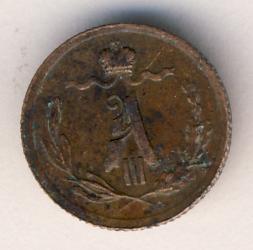 Динамика цен по монете ¼ копейки 1884 СПБ „Вензель Александра III“ VF¼ копейки 1884 года СПБДата выпуска: 01.01.1884 АверсВ центре вензель Александра III. Над ним Корона Российской империи с двумя развевающимися концами ленты Ордена Святого апостола Андрея Первозванного. Под вензелем, вдоль канта, две скрещенные ветви: слева лавровая, справа дубовая.РеверсВ центре указан номинал «¼», ограниченный с обеих сторон звездочками. Под цифрой номинала слово — «КОПЕЙКИ». Ниже, расположен декоративный разделитель в виде двух изогнутых линий и небольшой окружности между ними. Под линиями год выпуска монеты «1884» и под ним обозначение монетного двора «С.П.Б.».Каталожные номера