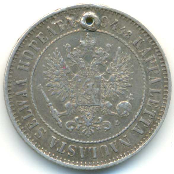 Динамика цен по монете 1 марка 1908 L „Для Финляндии“ F1 марка 1908 года LДата выпуска: 01.01.1908 АверсВ центре изображён полный Герб Великого княжества Финляндского — двуглавый орёл, головы которого увенчаны двумя коронами, третья, большая корона над ними. Все они соединены орденской лентой ордена Св. Апостола Андрея Первозванного. На груди орла расположен щит с титульным гербом Великого князя Финляндского, увенчанный княжеской короной. Вокруг щита орденская цепь с орденом Св. Апостола Андрея Первозванного. В правой лапе орла — скипетр, в левой — держава. Под левой лапой знак директора Гельсингфосского монетного двора — литера «L», Johan Conrad Lihr (Йохан Конрад Лир). Вокруг центрального изображения — витой ободок. За ободком круговая надпись: «94.48 KAPPALETTA NAULASTA SELWÄÄ HOPEATA», сверху разделённая цветочной розеткой. По окружности канта имеются рельефные элементы, выполненные в виде зубцов.РеверсВ центре — надпись в три строки: «1"│"MARKAA"│"1908». Вдоль канта изображён не замкнутый венок из двух дубовых ветвей, которые, в нижней части, перевязаны лентой на узел двойным бантом. По окружности канта имеются рельефные элементы, выполненные в виде зубцов.Каталожные номера