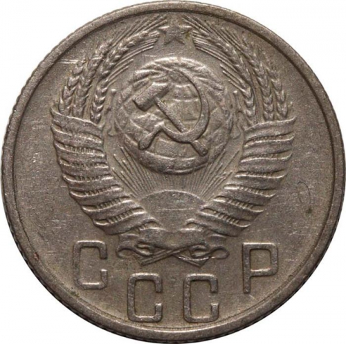 Динамика цен по монете 15 копеек 1956 - (Цифры даты расставлены) „Венок 16 лент“ XF15 копеек 1956 года (реверс штемпель А, цифры даты расставлены)Дата выпуска: 01.01.1956 АверсШтемпель 3.22. около правого луча звезды из ближнего зерна выходит ость, герб СССР — 16 витков ленты. РеверсШтемпель А, цифры даты расставлены, как в предыдущие годы. Каталожные номера