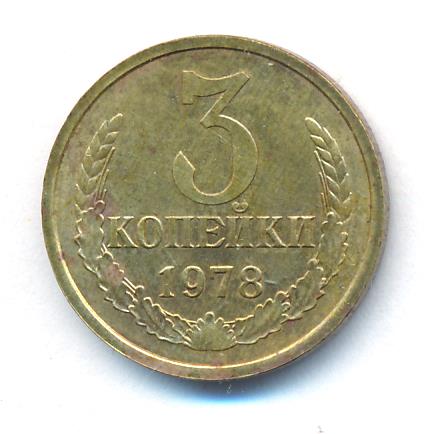 Динамика цен по монете 3 копейки 1978 VFРазменные монеты номиналом 3 копейки 1961 - 1991Для изготовления трехкопеечной монетки периода 1961 — 1991 гг. использовался медно-цинковый сплав. Дензнак отчеканен на кружке желтоватого цвета, имеющем по периметру гладкий двусторонний кант. Как и прочие монетки этого периода, 3 копейки имеют выступающие тексты и изображения. Аверс. В нижней части расположена аббревиатура СССР. Именно благодаря ей герб Советского Союза немного смещен вверх. Реверс. В нижней части оборотной стороны расположился венок из пшеницы и дуба — его ветви простираются практически вдоль всего периметра монетки. Вверху помещен номинал в цифровом отображении — под ним надпись «копеек». Дата чеканки помещена между венком и номиналом. Гурт у монетки рубчатый. Диаметр диска равен 22 миллиметрам. Вес — 3 грамма. Коллекционеры выделяют 4 вариации герба и пару разновидностей оборотной стороны — разница заключается в незначительных деталях рисунков. |
