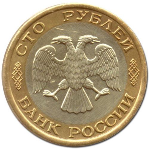 Динамика цен по монете 100 рублей 1992 ЛМД MS100 рублей 1992 года ЛМДДата выпуска: 01.01.1992 Аверсв центре медно-никелевого круга — рельеф двуглавого орла, художника Билибина; на ободке из бронзы: внизу по окружности слева на право — надпись: «БАНК РОССИИ», сверху по окружности надпись «СТО РУБЛЕЙ». Между двумя надписями с обеих сторон связка из ромбовидных геометрических фигур.Реверсв центре медно-никелевого круга — номинал монеты — цифра 100, ниже — слово «РУБЛЕЙ», расположенное горизонтально; внизу стоит знак монетного двора (ЛМД); в ободке из бронзы: сверху — звезда, справа ветка дуба с желудем, слева колос пшеницы, снизу под знаком монетного двора чеканен года выпуска по окружности — «1992».Каталожные номера