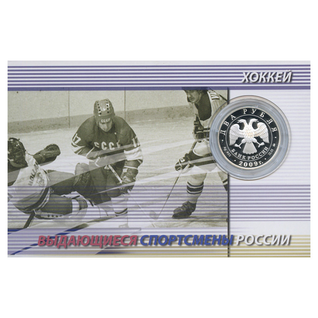 Динамика цен по монете 2 рубля 2009 ММД „Хоккей. В.Б. Харламов“ PROOFВ.Б. ХарламовСерия: Выдающиеся спортсмены России (хоккей) Аверсв центре — эмблема Банка России (двуглавый орёл с опущенными крыльями, под ним — надпись полукругом «БАНК РОССИИ»), обрамленная кругом из точек и надписями по кругу — вверху: «ДВА РУБЛЯ», внизу: слева — обозначения драгоценного металла и пробы сплава, в центре — дата выпуска «2009 г.», справа — содержание химически чистого металла и товарный знак монетного двора.Реверсв центре — портрет В.Б. Харламова, справа — миниатюрное изображение хоккеиста с клюшкой, на матовой поверхности — надпись в две строки, разделённая чертой: «ВАЛЕРИЙ ХАРЛАМОВ» и факсимильная подпись хоккеиста, внизу — изображение шайбы.Каталожные номера