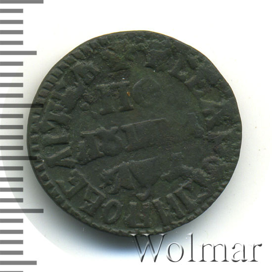 Динамика цен по монете Полушка 1704 - (Набережный МД) XFПолушка 1704 года. Набережный МДДата выпуска: 01.01.1704 АверсВ центре изображен Государственный Герб России — двуглавый орёл с распущенными крыльями. Головы которого увенчаны двумя коронами, третья, большая корона над ними. В правой лапе орла — скипетр, в левой — держава. Герб окружен линейной окружностью. За окружностью надпись: «ЦРЬ ПЕТРЪ АЛЕЗIЕВИЧЪ•". По окружности канта имеются рельефные элементы, выполненные в виде точек.РеверсВ центре указан номинал в две строки: «ПО"│"ЛУШКА». Под надписью, кириллицей, указан год выпуска — «1704». Центральное изображение окружено линейной окружностью. За окружностью надпись: «ВСЕѦ РWССIИ САМОДЕРЖЕЦЪ•". Надпись, в верхней части, разделяет точка. По окружности канта имеются рельефные элементы, выполненные в виде точек.Каталожные номера