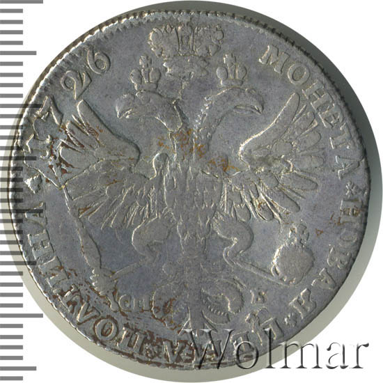 ЕкатеринаI правила очень недолго, поэтому ее монеты встречаются относительно редко. В ее правление сохранился как дизайн, так и весовые нормы монет. Сменился только портрет.
