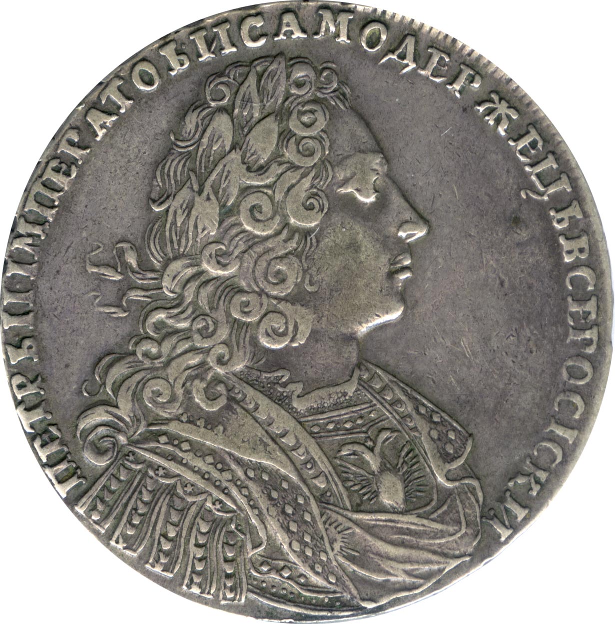 1 проход1 рубль 1728 - (Со звездой на груди. «...IМПЕРАТОb...».) „Портрет Петра II. Голова не разделяет надпись“. |