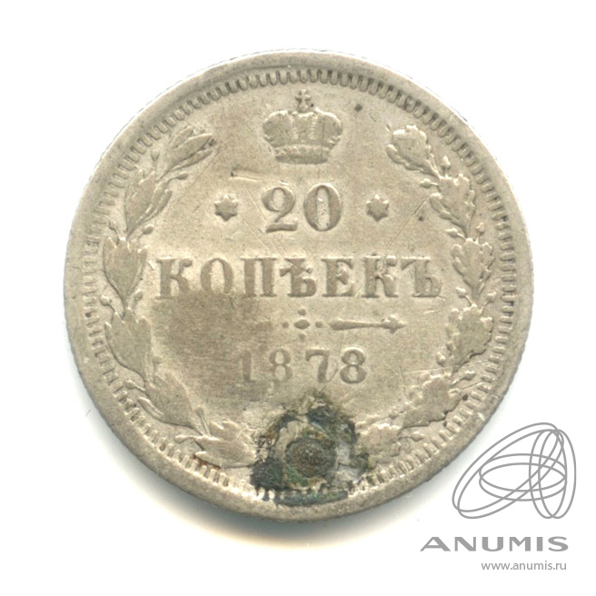 13 проходов20 копеек 1878 СПБ НI (Орел 4 типа). |