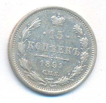 652 прохода15 копеек 1891 СПБ АГ (Новый орел). |