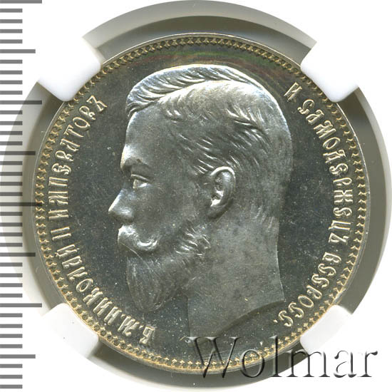 Динамика цен по монете 1 рубль 1907 ЭБ „Портрет Николая II“ PROOF1 рубль 1907 года ЭБДата выпуска: 01.01.1907 АверсВ центре профильный портрет влево императора Николая II. Слева надпись «Б.М. НИКОЛАЙ II ИМПЕРАТОР», справа — «И САМОДЕРЖЕЦ ВСЕРОСС.». По окружности канта имеются рельефные элементы, выполненные в виде зубцов.РеверсВ центре изображен Малый Государственный Герб Российской империи — двуглавый орёл, головы которого увенчаны двумя коронами, третья, большая корона над ними. Все они соединены орденской лентой ордена Св. Апостола Андрея Первозванного. На груди орла расположен Московский герб, в щите изображен Георгий Победоносец с копьем поражающий дракона. Вокруг щита цепь ордена Св. Апостола Андрея Первозванного. На крыльях изображены гербы: Царства Казанского, Польского, Херсонеса Таврического, Астраханского, Сибирского, Грузинского и герб соединенных княжеств Киевского, Новгородского и Владимирского — по 4 на каждое крыло. В правой лапе орла — скипетр, в левой — держава. Под ним слева направо изображены: номинал — надпись «РУБЛЬ», цветочная розетка и дата выпуска «1907 Г.». По окружности канта имеются рельефные элементы, выполненные в виде зубцов.Каталожные номера