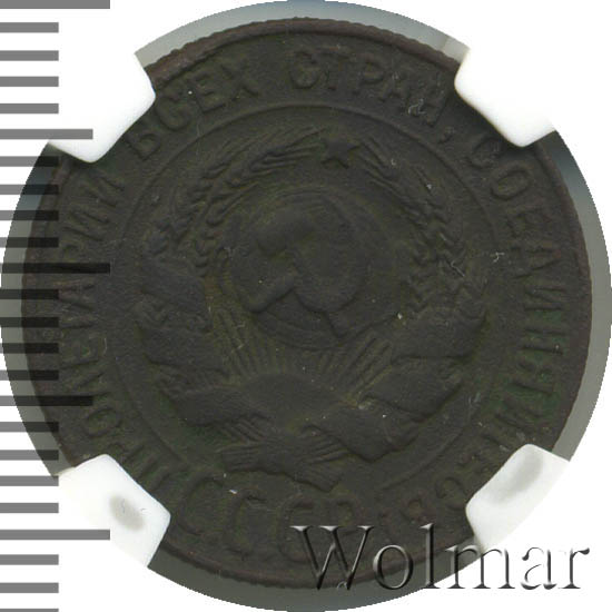 9 775 проходов1 копейка 1924 - («СССР» вытянуты) „Гурт рубчатый“. |