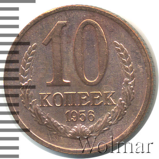 67 проходов10 копеек 1956 - (Пробные: Венок 16 лент) „Пробные“. |