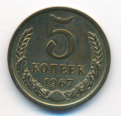 Динамика цен по монете 5 копеек 1967 XFРазменные монеты номиналом 5 копеек 1961 - 1991Пятикопеечная монета времен позднего периода существования СССР изготовлена в виде кружка из медно-цинкового сплава. По периметру она имеет гладкую, выступающую с двух сторон окантовку. Все изображения и тексты возвышаются над основной плоскостью дензнака. Аверс. Как и у прочих монет низшего номинала, лицевая сторона пятикопеечной монеты украшена гербом Советского Союза и текстом под ним в виде аббревиатуры СССР. Реверс. Вдоль внешнего канта расположен венок, собранный из ветвей дуба и колосков пшеницы. Внутри него помещен номинал в виде цифры и букв (5 копеек), а также дата чеканки под ним. Гурт у монетки рубчатый. Диаметр круга составляет 25 мм. Номинальный вес — 5 грамм. Общий тираж выпуска превысил 1 миллиард экземпляров. Для чеканки использовалось несколько разновидностей штампов — только аверс встречается в четырех вариантах. |