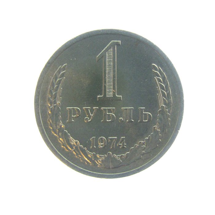 Динамика цен по монете 1 рубль 1974 PROOFРазменные монеты номиналом 1 рубль 1961 - 1991Рубль этого периода изготовлен из медно-никелевого сплава в виде диска диаметром 27 мм. С двух сторон монетка украшена выступающим кантом. Все нанесенные изображения и тексты выступают над плоскостью основного диска. Аверс. Центральное место на нем отведено под герб СССР — его крупное изображение имеет детальную прорисовку элементов. Исключение составляет название республик на ленте, опоясывающей колосья. По периметру в выделенной рамкой зоне находится письменное указание на область хождения денежного знака — Союз Советских Социалистических Республик. Реверс. Нижнюю и боковые части диска занимает венок, сплетенный из дуба и колосьев пшеницы. Внутри него помещены номинал (1 рубль) и дата чеканки. Рубль этого периода чеканился как в Москве, так и в Ленинграде. Он имеет гладкий гурт с надписью — номинал в письменном виде и звезды. Вес дензнака составляет 7,5 грамм. |