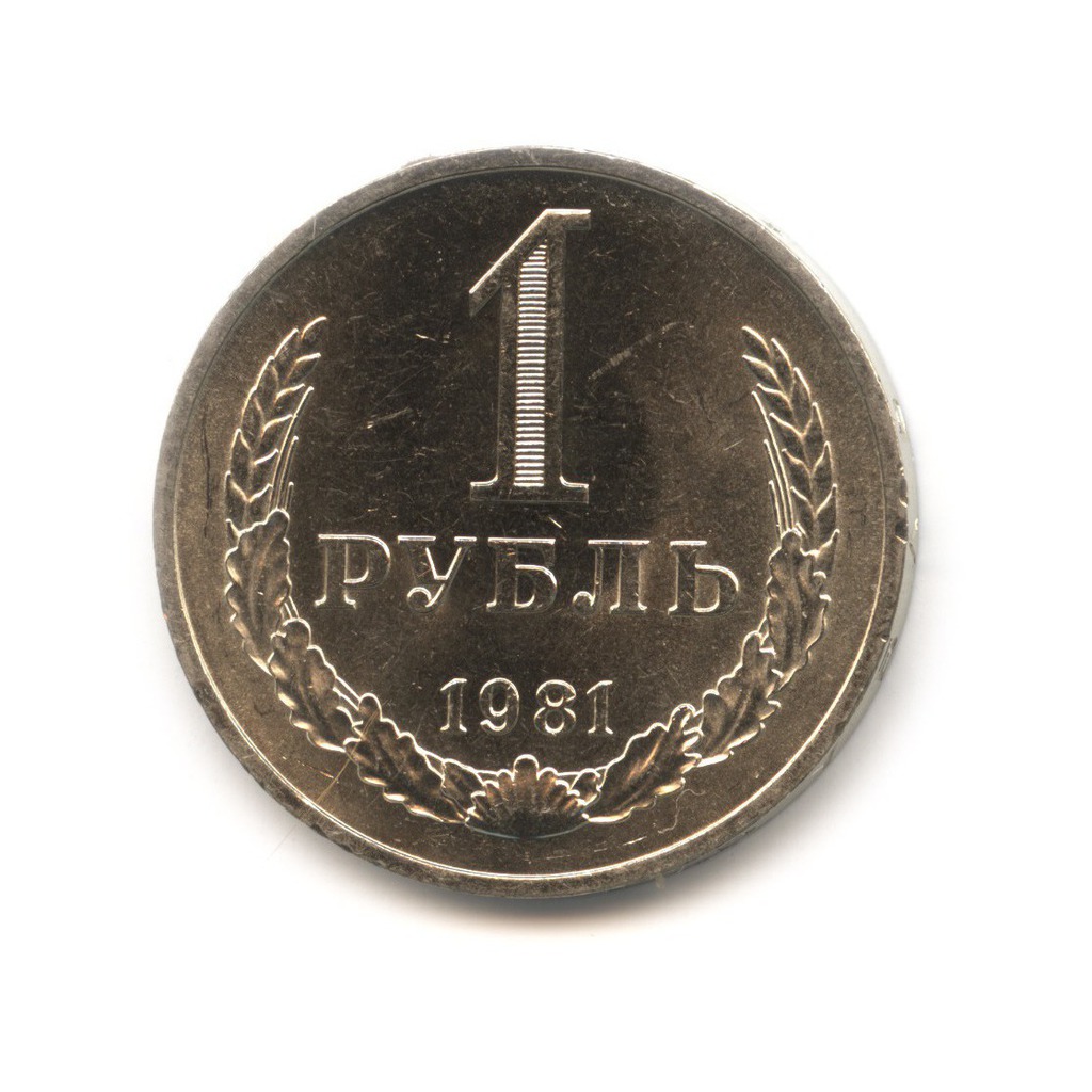 Динамика цен по монете 1 рубль 1981 - (Большая звезда) AUРазменные монеты номиналом 1 рубль 1961 - 1991Рубль этого периода изготовлен из медно-никелевого сплава в виде диска диаметром 27 мм. С двух сторон монетка украшена выступающим кантом. Все нанесенные изображения и тексты выступают над плоскостью основного диска. Аверс. Центральное место на нем отведено под герб СССР — его крупное изображение имеет детальную прорисовку элементов. Исключение составляет название республик на ленте, опоясывающей колосья. По периметру в выделенной рамкой зоне находится письменное указание на область хождения денежного знака — Союз Советских Социалистических Республик. Реверс. Нижнюю и боковые части диска занимает венок, сплетенный из дуба и колосьев пшеницы. Внутри него помещены номинал (1 рубль) и дата чеканки. Рубль этого периода чеканился как в Москве, так и в Ленинграде. Он имеет гладкий гурт с надписью — номинал в письменном виде и звезды. Вес дензнака составляет 7,5 грамм. |