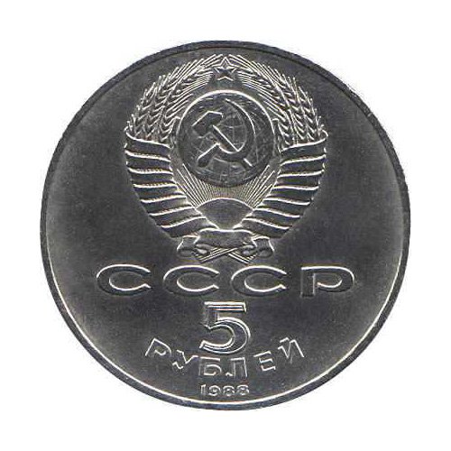 Динамика цен по монете 5 рублей 1988 - „Памятник Петру I в Ленинграде“ MSПамятник Петру ПервомуСерия: Памятники архитектуры Памятник состоит из двух частей — постамента, и самой скульптуры. Постамент — «Гром-камень», был доставлен из окрестностей деревни Конная Лахта. Изначально он весил более 2 000 тонн, после обработки масса его значительно уменьшилась. Для изготовления самой скульптуры Екатериной II был приглашен французский мастер Этьен-Морис Фальконе. Из-за сложности работы и огромных габаритов памятника, отливка его заняла долгое время. Немало споров возникло и при согласовании эскизов, определяющих внешний вид Петра I. Тем не менее, работы были завершены, и ознаменованы торжественным открытием «Медного всадника» лично Екатериной II. АверсВ верхней части изображение Государственного герба Союза Советских Социалистических Республик, под ним надписи: «СССР», в две строки — «5 РУБЛЕЙ» (слово «РУБЛЕЙ» расположено полукругом), обозначающая достоинство монеты, и «1988», обозначающая год чеканки. По окружности выступающий кант. Изображение и надписи рельефныеРеверсВ центре изображение памятника Петру Первому на площади Декабристов в Ленинграде (скульпторы Э.М. Фальконе, М.А. Колло) на фоне силуэта Петропавловской крепости, а также надписи: вверху по окружности «ПАМЯТНИК ПЕТРУ ПЕРВОМУ», внизу «ЛЕНИНГРАД» и справа «1782» (год открытия памятника). По окружности выступающий кант. Изображения и надписи рельефныеКаталожные номера