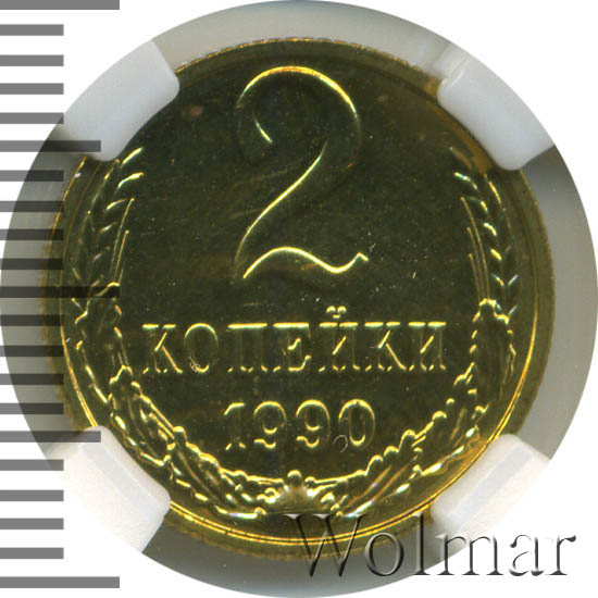 Динамика цен по монете 2 копейки 1990 AUРазменные монеты номиналом 2 копейки 1961 - 1991Двухкопеечный номинал периода позднего Советского Союза изготовлен из сплава меди и цинка — он отчеканен на кружке металла диаметром 18 миллиметров. Все изображения и тексты выступают на фоне основного диска монеты. По периметру дензнака имеется двусторонний гладкий выступающий кант. Аверс. Его можно назвать стандартным для всех монет этого периода — в центре помещен герб Советского Союза, под которым располагается надпись СССР. Реверс. Пшенично-дубовый венок, распростертый с нижнего края монетки вверх. В центре помещена дата чеканки в цифровом отображении. Номинал находится вверху — он прописан буквами и цифрами (2 копейки). Гурт у монетки рубчатый. Вес согласно нормативу составляет 2 грамма. За весь период чеканки монетка вышла огромным тиражом — она встречается в трех различных вариациях. |