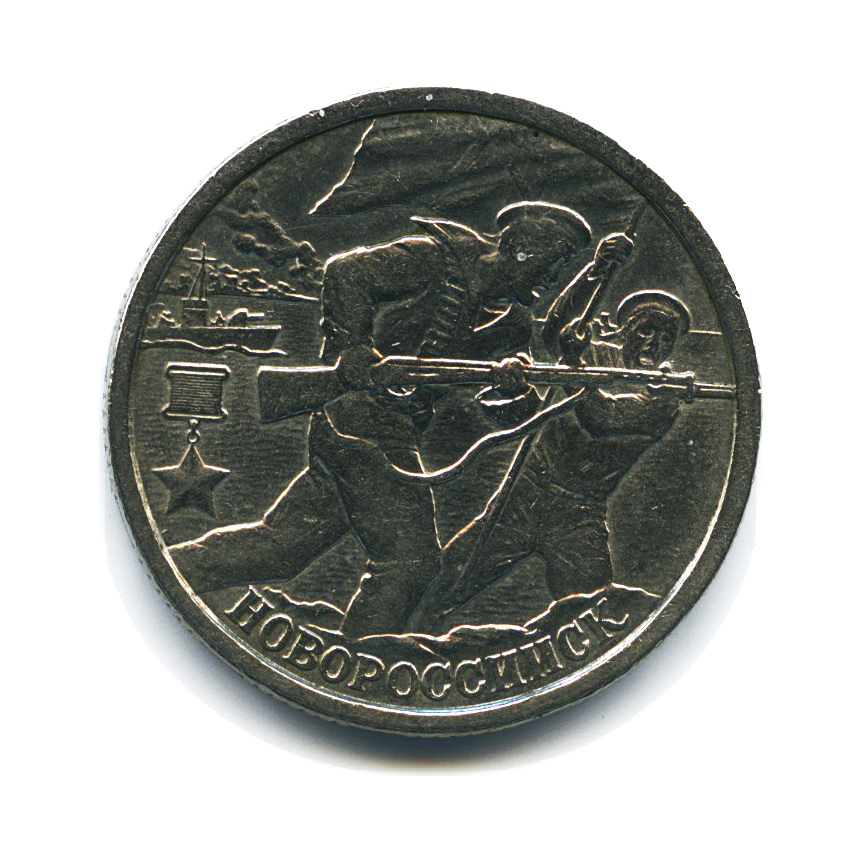Динамика цен по монете 2 рубля 2000 СПМД „Города-герои. Новороссийск“ MSНовороссийск. 55-я годовщина Победы в Великой Отечественной войне 1941−1945 ггДата выпуска: 04.05.2000 Аверсв центре диска - обозначение достоинства монеты в две строки «2 РУБЛЯ», ниже — надпись: «БАНК РОССИИ», под ней — дата «2000», слева и справа — стилизованная ветка растения.Реверсдва морских пехотинца в момент атаки: один — с винтовкой, другой — со знаменем в руках, слева — медаль «Золотая Звезда», на втором плане военный корабль и очертания города, внизу по окружности — надпись: «НОВОРОССИЙСК».Каталожные номера