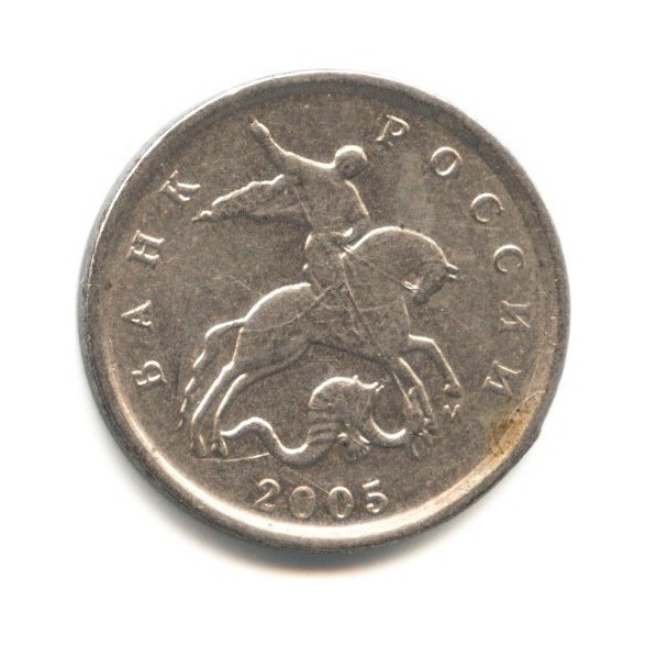 Динамика цен по монете 1 копейка 2005 М PROOF1 копейка образца 1997 годаСерия: Регулярные монеты Монета имеет форму диска белого цвета с выступающим кантом по окружности на лицевой (аверс) и оборотной (реверс) сторонах. Материал монеты обладает ферромагнитными свойствами. Аверс— в центре — рельефное изображение Георгия Победоносца верхом на коне, поражающего копьем змея;— справа внизу, под передним копытом коня — буквы: М (Москва) или С-П (Санкт-Петербург), обозначающие монетный двор-изготовитель; — вверху по окружности слева на право — надпись, разделенная фигурой Георгия Победоносца: «БАНК РОССИИ»; — внизу, под изображением змея — год чеканки. Реверс— в центре (ближе к правому краю) — обозначение номинала монеты: цифра 1, под ней — слово «КОПЕЙКА», расположенное горизонтально;— в нижней части диска — стилизованный растительный орнамент в виде двух ветвей. АвторыМонетный двор: Санкт-Петербургский монетный двор (С-П) и Московский монетный двор (М) Спецификации