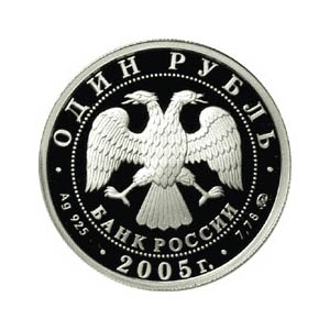 Современный пехотинец. Морская пехотаСерия: Вооруженные Силы Российской Федерации Аверсв центре диска — эмблема Банка России (двуглавый орел с опущенными крыльями, под ним надпись полукругом «БАНК РОССИИ»), обрамленная кругом из точек и надписями по кругу: вверху — «ОДИН РУБЛЬ», внизу — «2005 г.», слева -обозначение металла, проба сплава, справа — содержание драгоценного металла в чистоте и товарный знак монетного двора.Реверсв центре — изображение высадившегося на берег современного морского пехотинца, на втором плане слева — бегущий морской пехотинец, справа — десантный корабль, вверху по окружности — надпись: «МОРСКАЯ ПЕХОТА».Каталожные номера