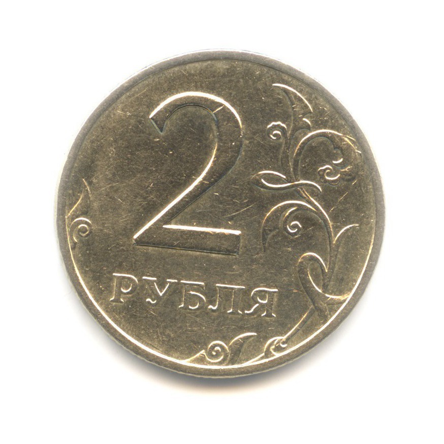 2 рубля образца 1997 годаСерия: Регулярные монеты Аверс— в центре — эмблема Банка России (двуглавый орел с опущенными крыльями, под ним — надпись полукругом: «БАНК РОССИИ»), справа под лапой орла — товарный знак монетного двора-изготовителя;— вверху по окружности — буквенное обозначение номинала монеты: «ДВА РУБЛЯ»; — в нижней части диска — две горизонтальные линии, разделенные точкой, под ними — год чеканки. Реверс— в центре (ближе к левому краю) — обозначение номинала монеты: цифра 2, под ней — слово «РУБЛЯ», расположенное горизонтально;— внизу вдоль канта и в правой части диска — стилизованный растительный орнамент в виде изогнутой ветви с переплетающимися стеблями. АвторыМонетный двор: Санкт-Петербургский монетный двор (С-П) и Московский монетный двор (М) Спецификации